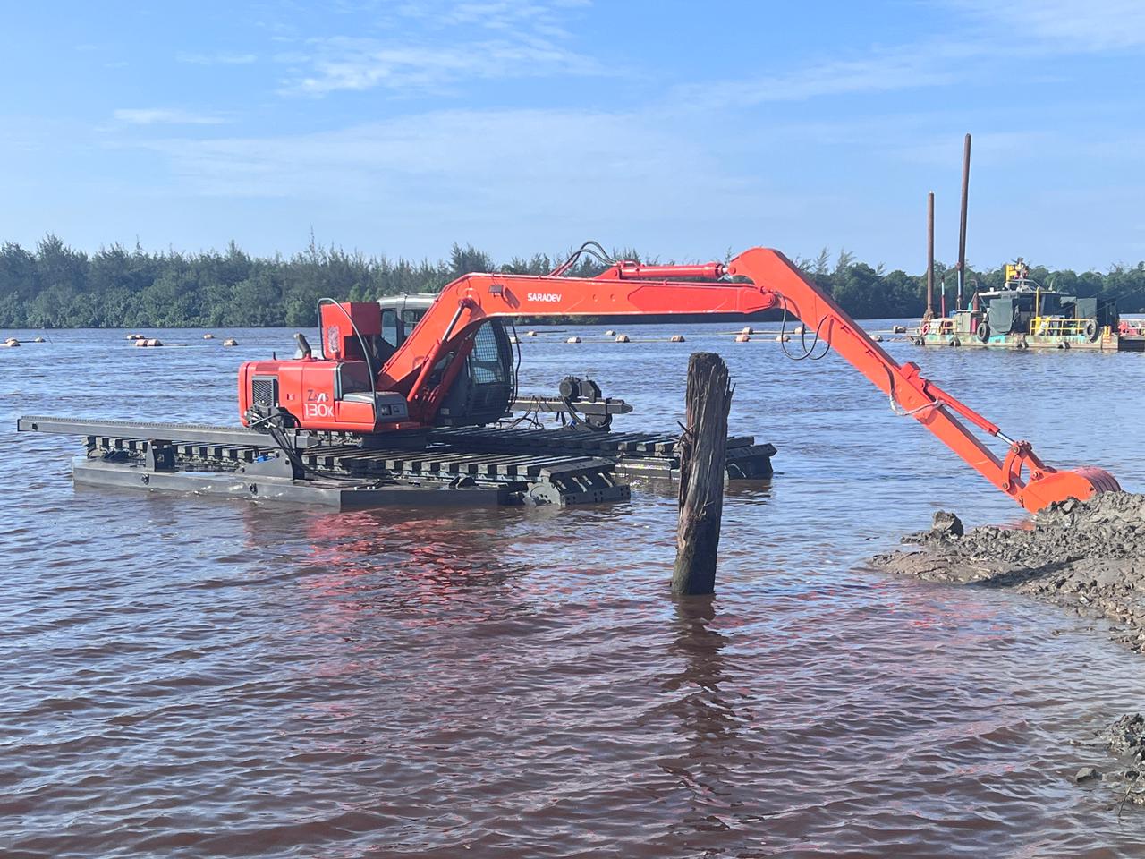 From left to right; 15m Long Arm Excavator; Amphibious Excavator; Multifunction Excavate Dredger